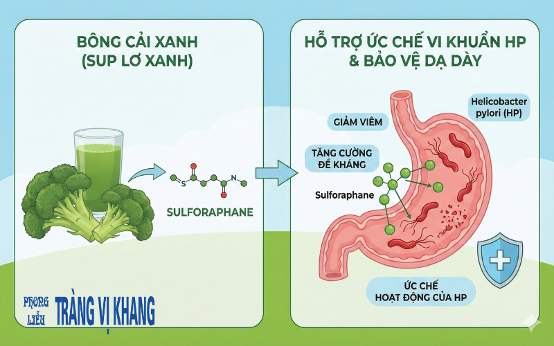 Súp lơ xanh được xem là một trong những thực phẩm được nghiên cứu nhiều nhất liên quan đến HP. Loại rau này chứa sulforaphane, hợp chất có khả năng: