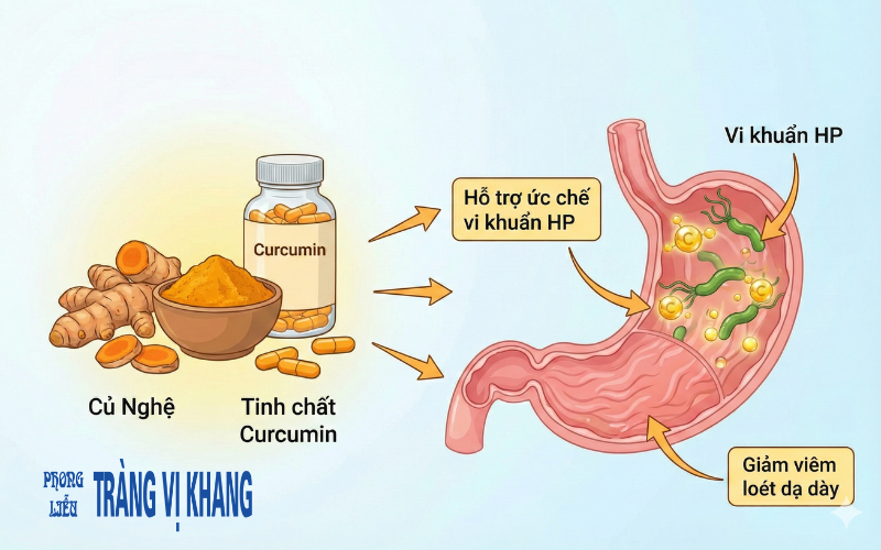 Có thể dùng tinh bột nghệ pha nước ấm hoặc bổ sung qua món ăn hằng ngày.