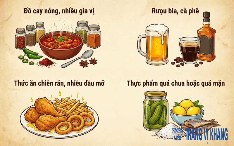 Bên cạnh việc quan tâm ăn gì để diệt vi khuẩn HP, người bệnh cũng cần tránh những thực phẩm làm nặng thêm tổn thương dạ dày: