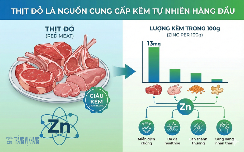 Thịt bò, thịt heo, thịt gà chứa kẽm ở dạng dễ hấp thu sinh học, phù hợp cho cả người lớn và trẻ em thiếu kẽm.