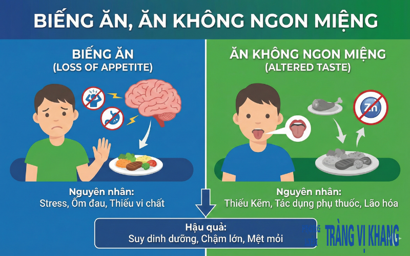 Kẽm giữ vai trò quan trọng trong cảm nhận vị giác. Khi thiếu kẽm, người bệnh thường có cảm giác ăn không thấy ngon, nhanh no, chán ăn kéo dài. Đây là biểu hiện rất thường gặp ở trẻ em thiếu kẽm.