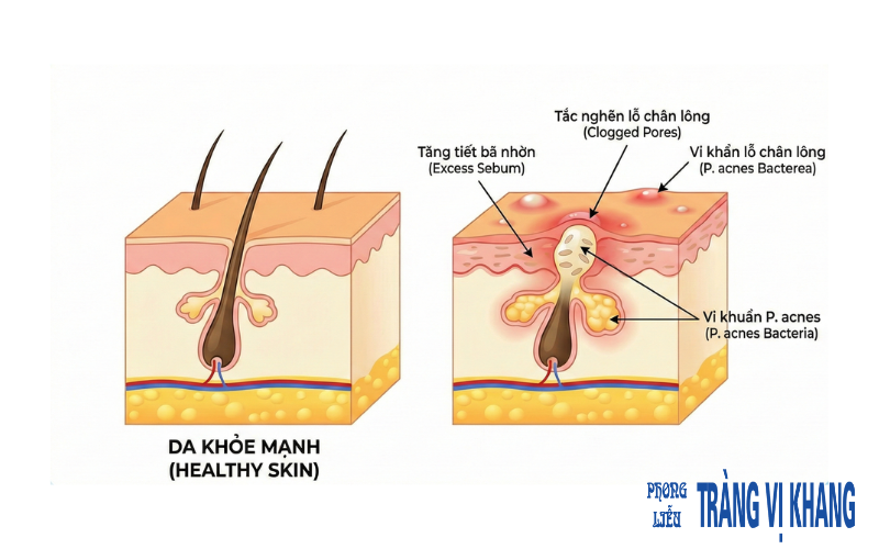 Kẽm tham gia vào quá trình tái tạo tế bào da và điều hòa tuyến bã nhờn. Khi thiếu kẽm, da thường khô, bong tróc, dễ nổi mụn viêm; tóc trở nên yếu, dễ gãy rụng; móng tay giòn và dễ nứt.