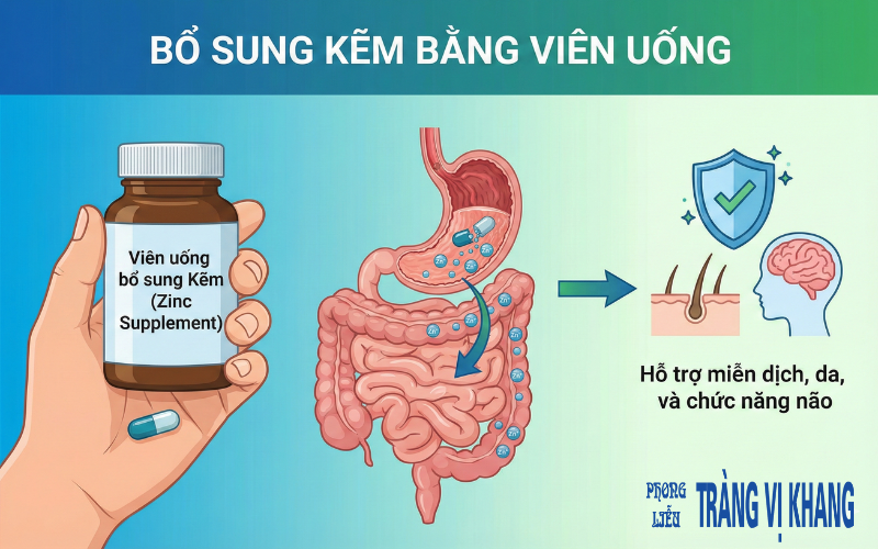 Trong trường hợp thiếu kẽm mức độ vừa đến nặng, hoặc khi chế độ ăn không đáp ứng đủ nhu cầu, có thể cân nhắc bổ sung kẽm dạng viên uống hoặc siro.