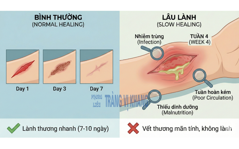 Một dấu hiệu thiếu kẽm khác là vết thương chậm hồi phục, dễ nhiễm trùng. Điều này xảy ra do kẽm cần thiết cho quá trình phân chia tế bào và tổng hợp collagen.