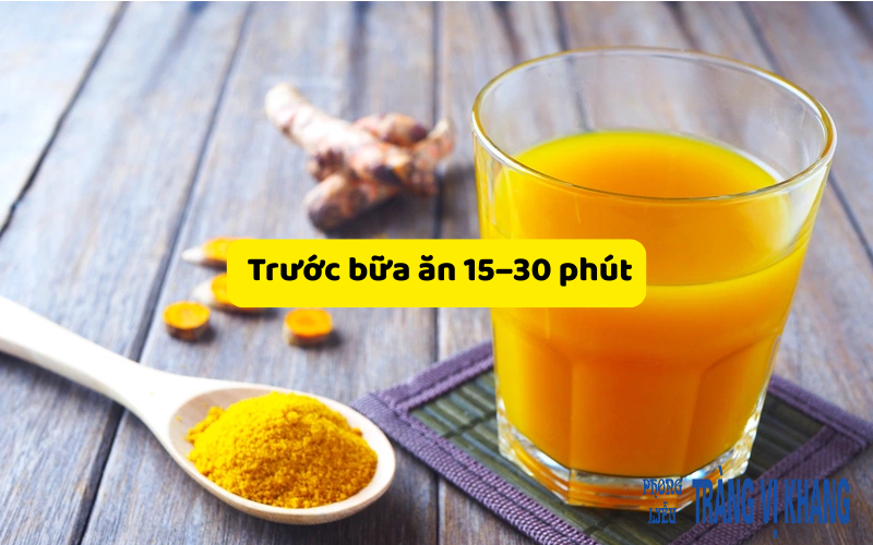 Đây được coi là thời điểm “vàng”. Uống tinh bột nghệ pha với nước ấm hoặc kết hợp mật ong trước bữa ăn giúp: