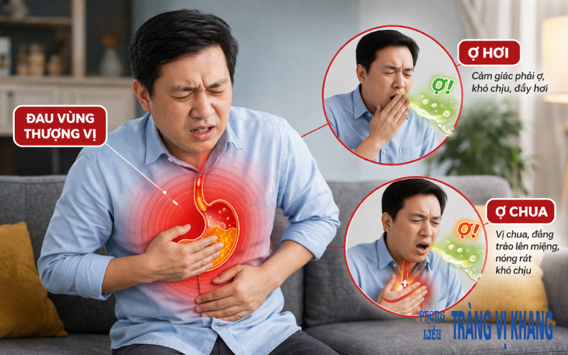 Ợ hơi, ợ chua: Do dư thừa acid dịch vị trào ngược lên thực quản.