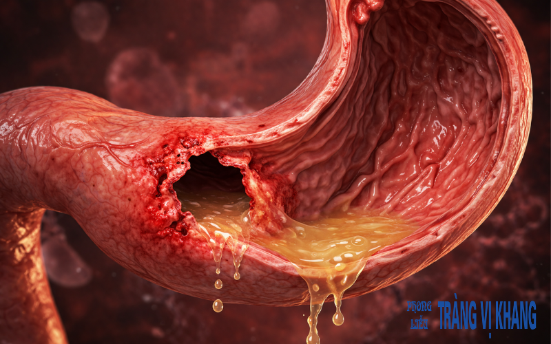 Thủng tạng rỗng: Vết loét ăn sâu xuyên qua thành dạ dày hoặc đại tràng.