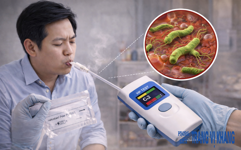 Test vi khuẩn HP: Thông qua hơi thở hoặc xét nghiệm máu/phân.