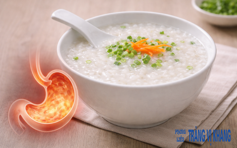 Ưu tiên thực phẩm mềm: Cháo, súp, rau củ hấp chín giúp giảm tải áp lực co bóp.